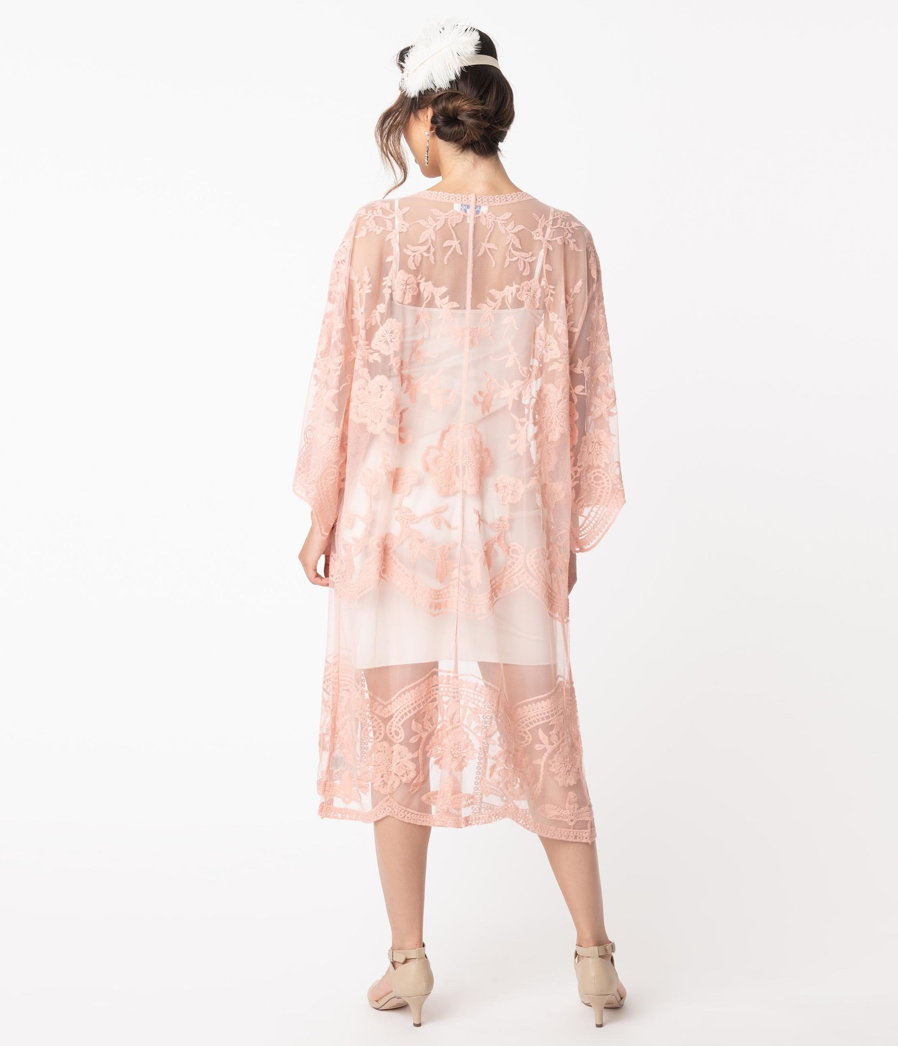 • Load image into Gallery viewer, 1920s Style Blush Pink Crochet Lace Kimono