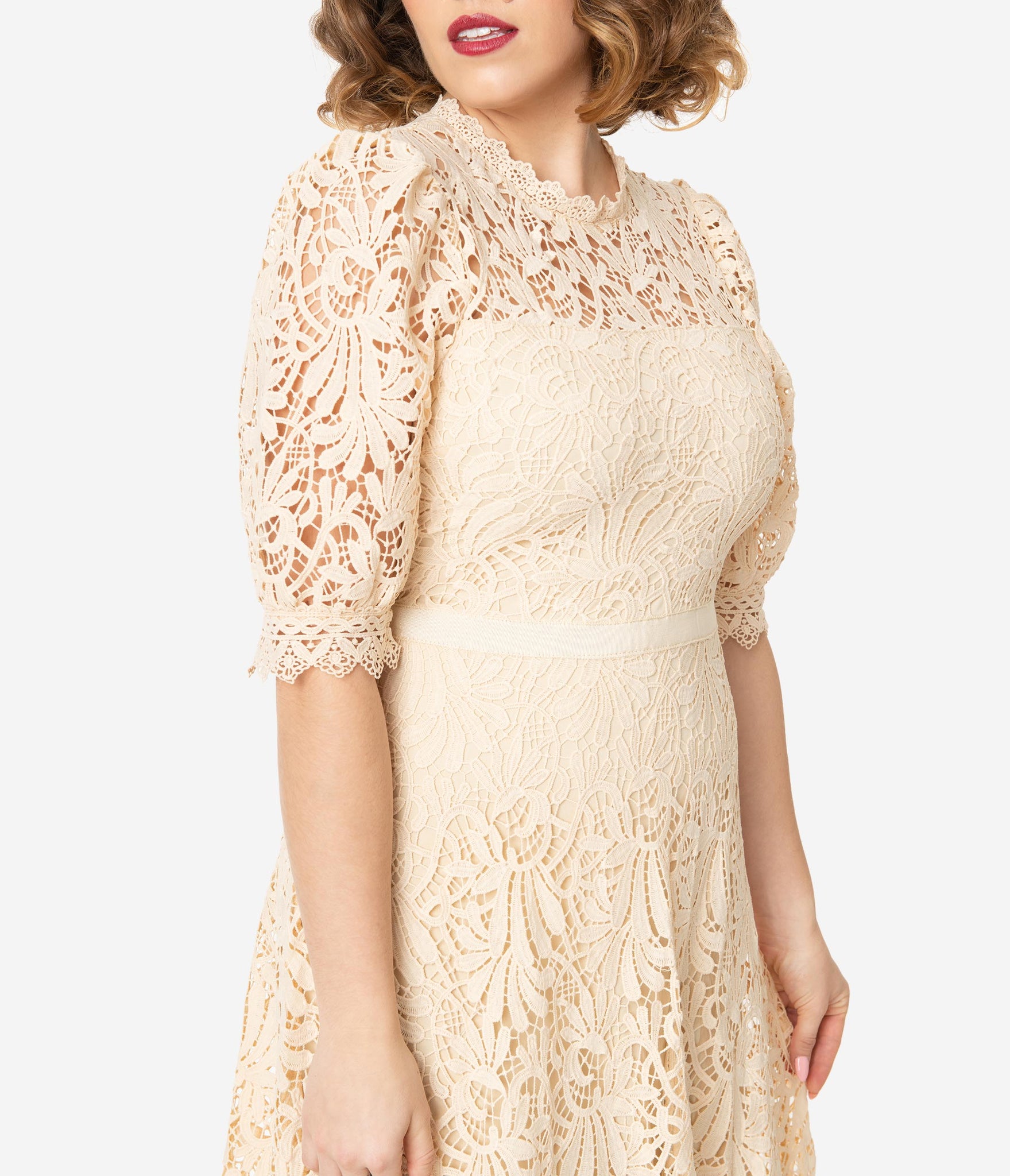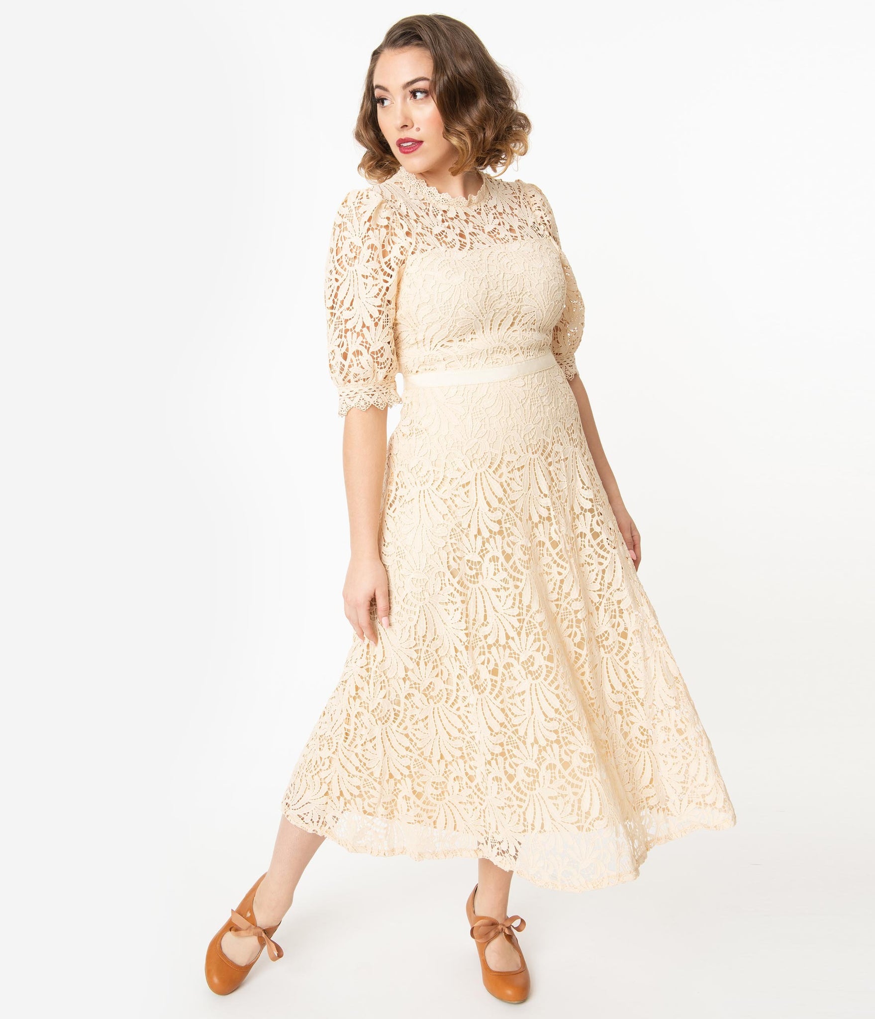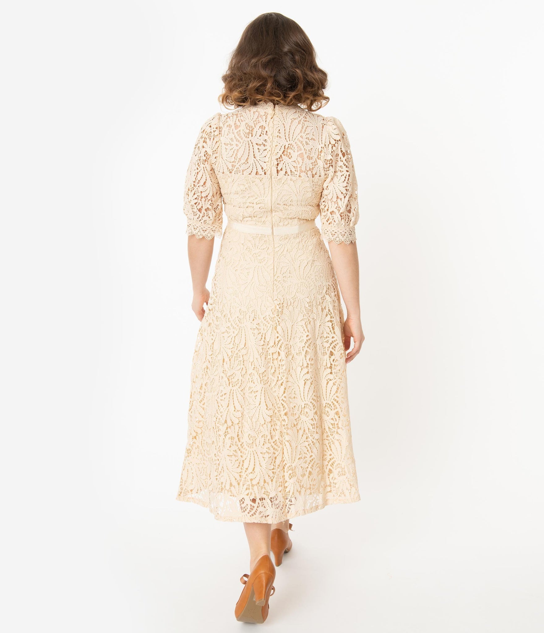 • Load image into Gallery viewer, 1940s Style Cream Lace Midi Dress