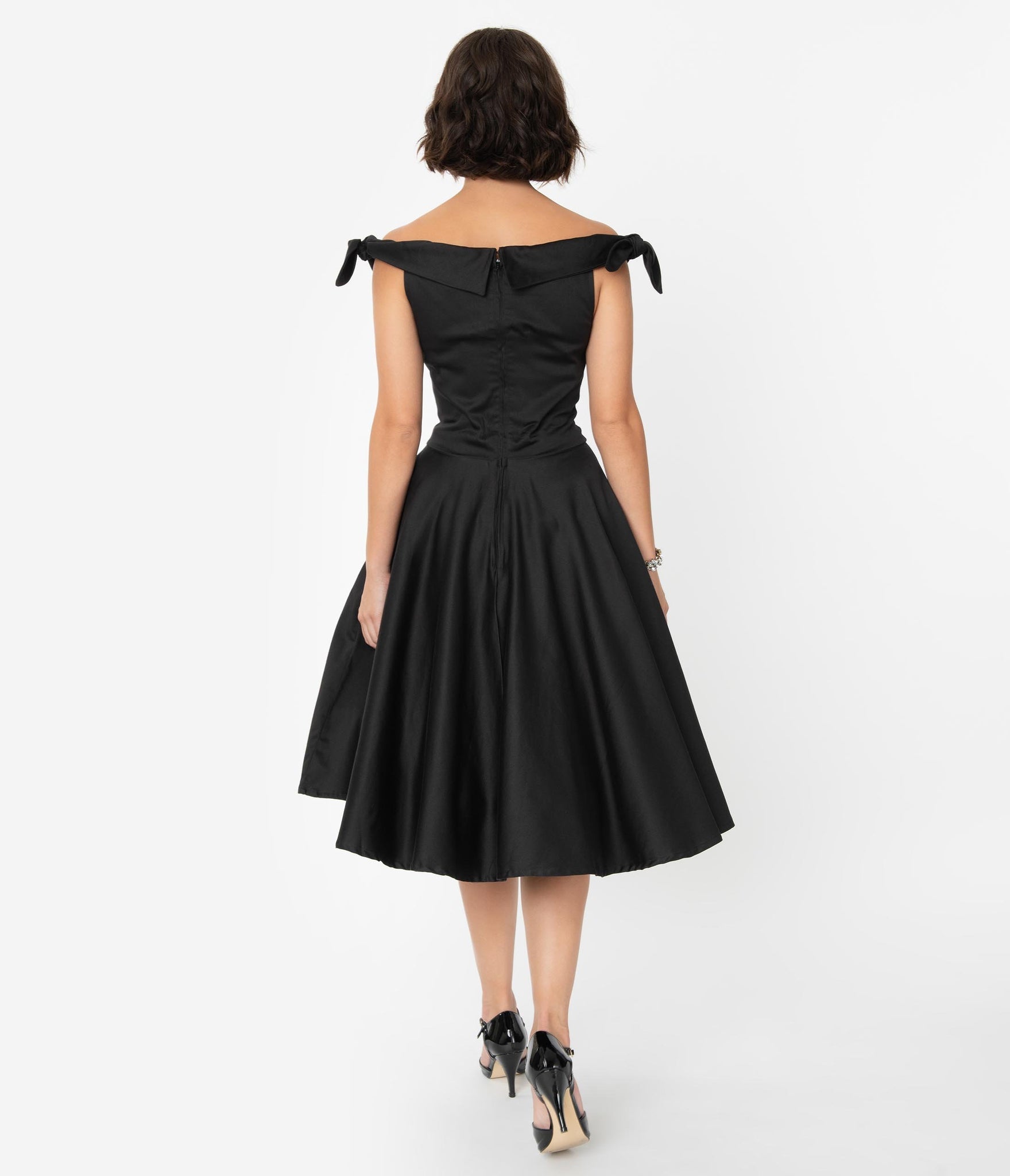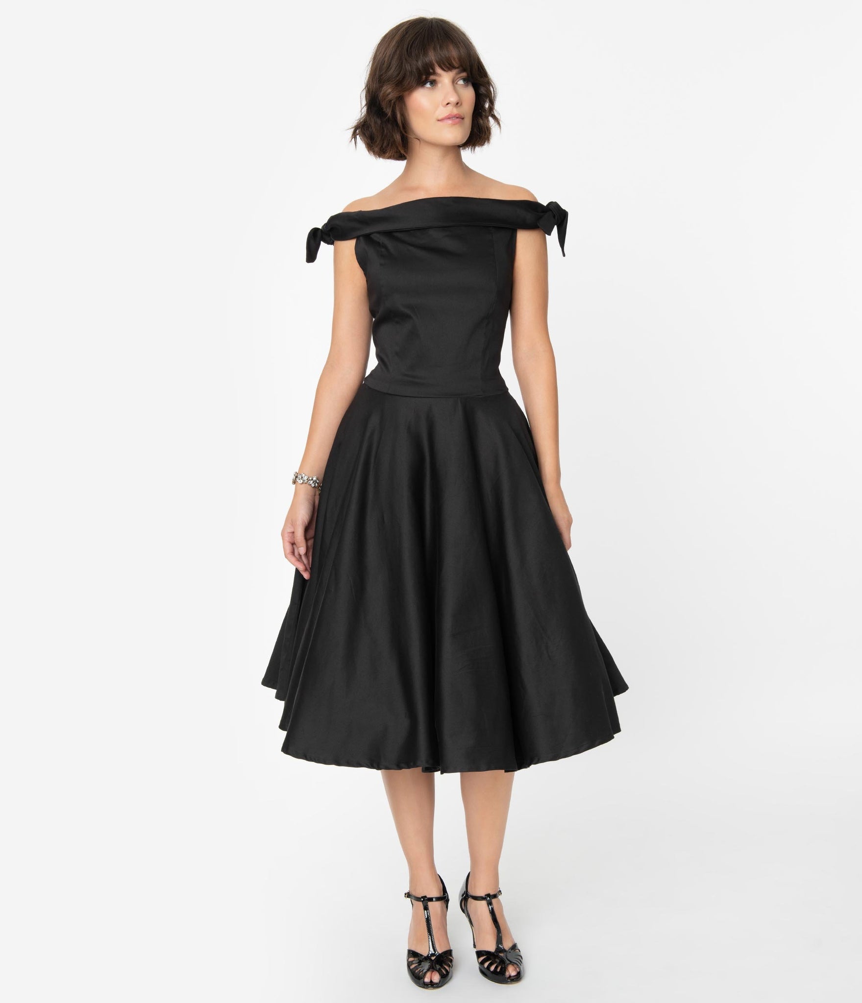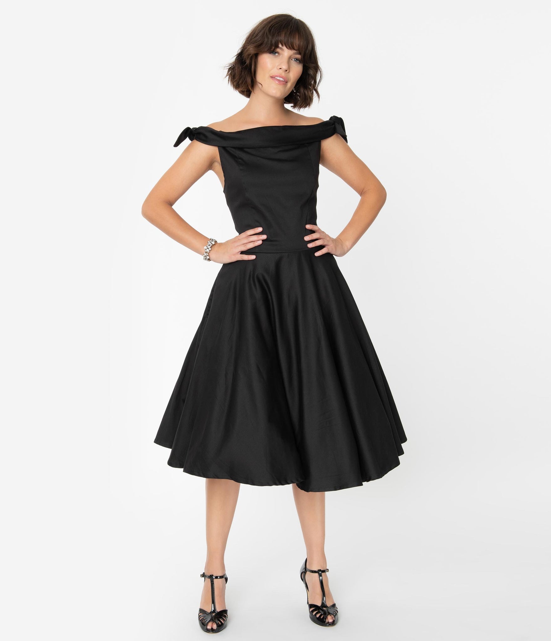 1950s Style Black Off Shoulder Mona Swing Dress