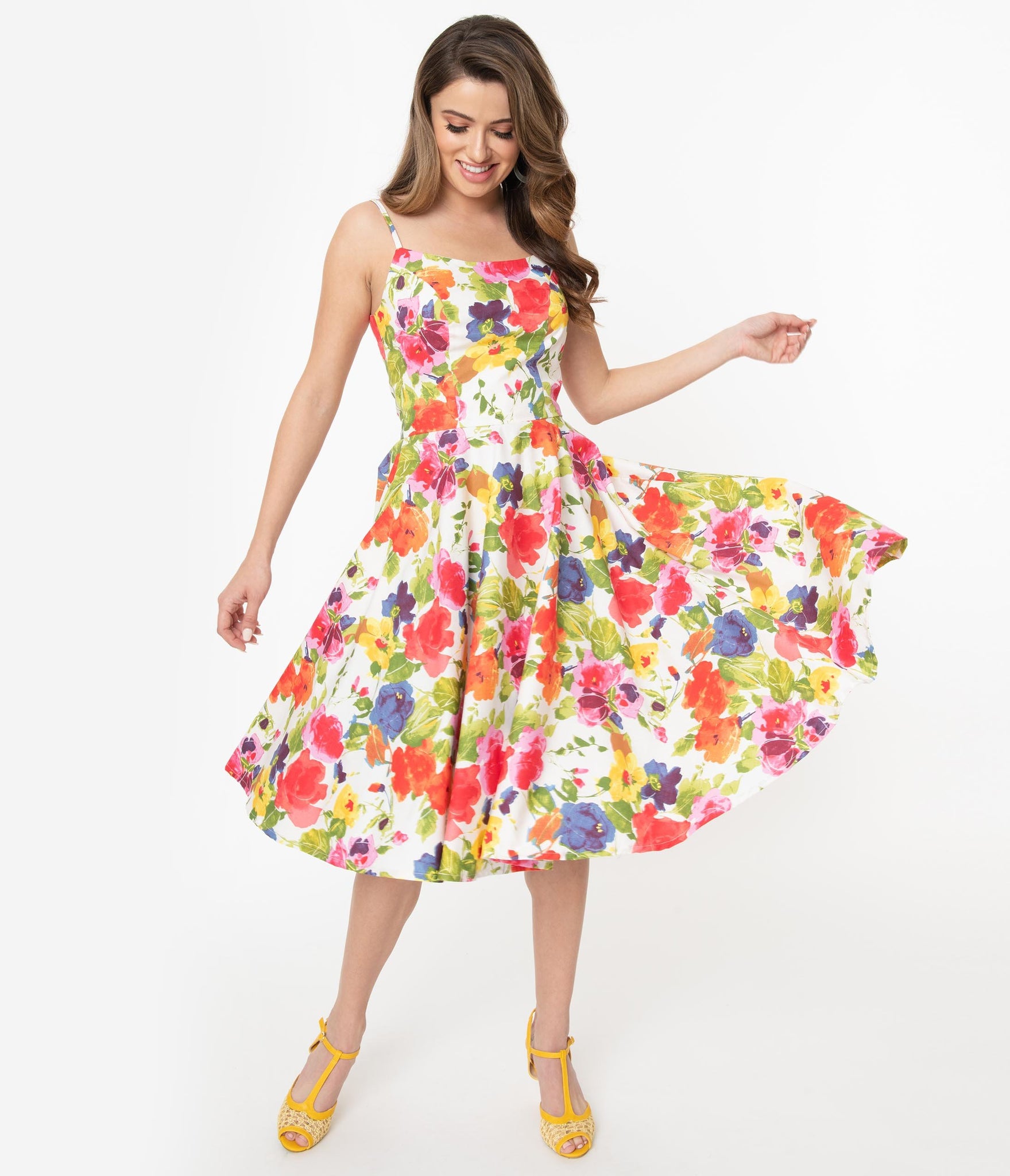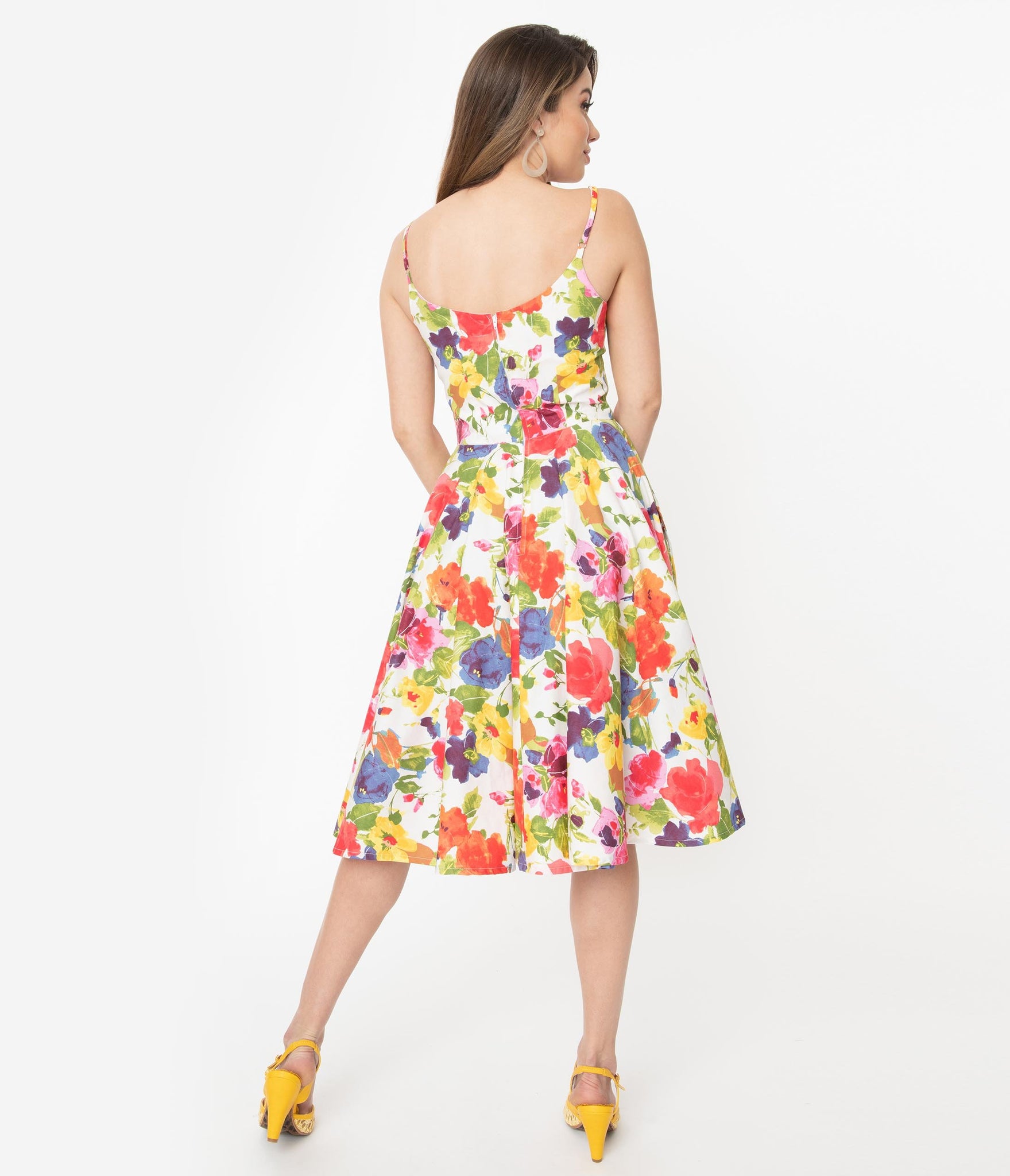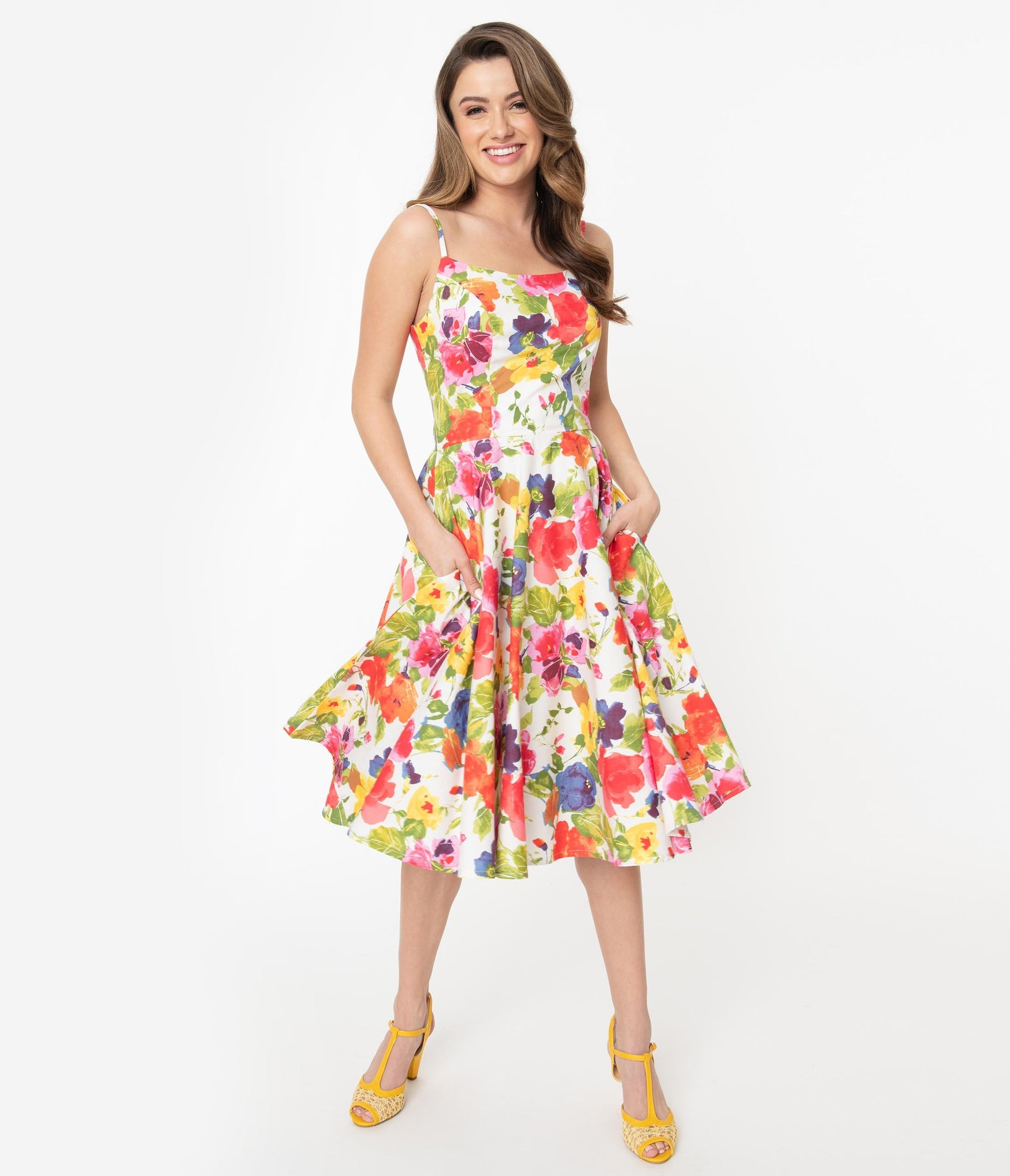 1950s Style Multicolor Floral Print Jane Swing Dress