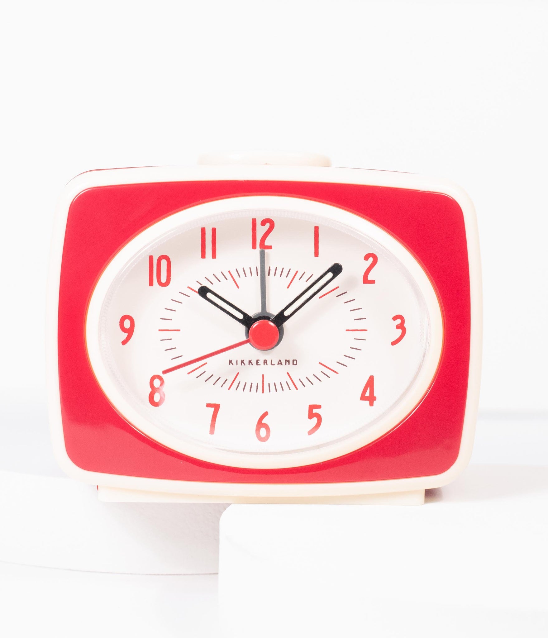 Would you look at the time, darling? This adorable atomic style alarm clock is full of mid-century styling crafted in red and ivory plastic. The oval clock face features an hour, minute, second and alarm hand for clear viewing. Complete with a top button to turn the alarm on and off, just ten more minutes, please!