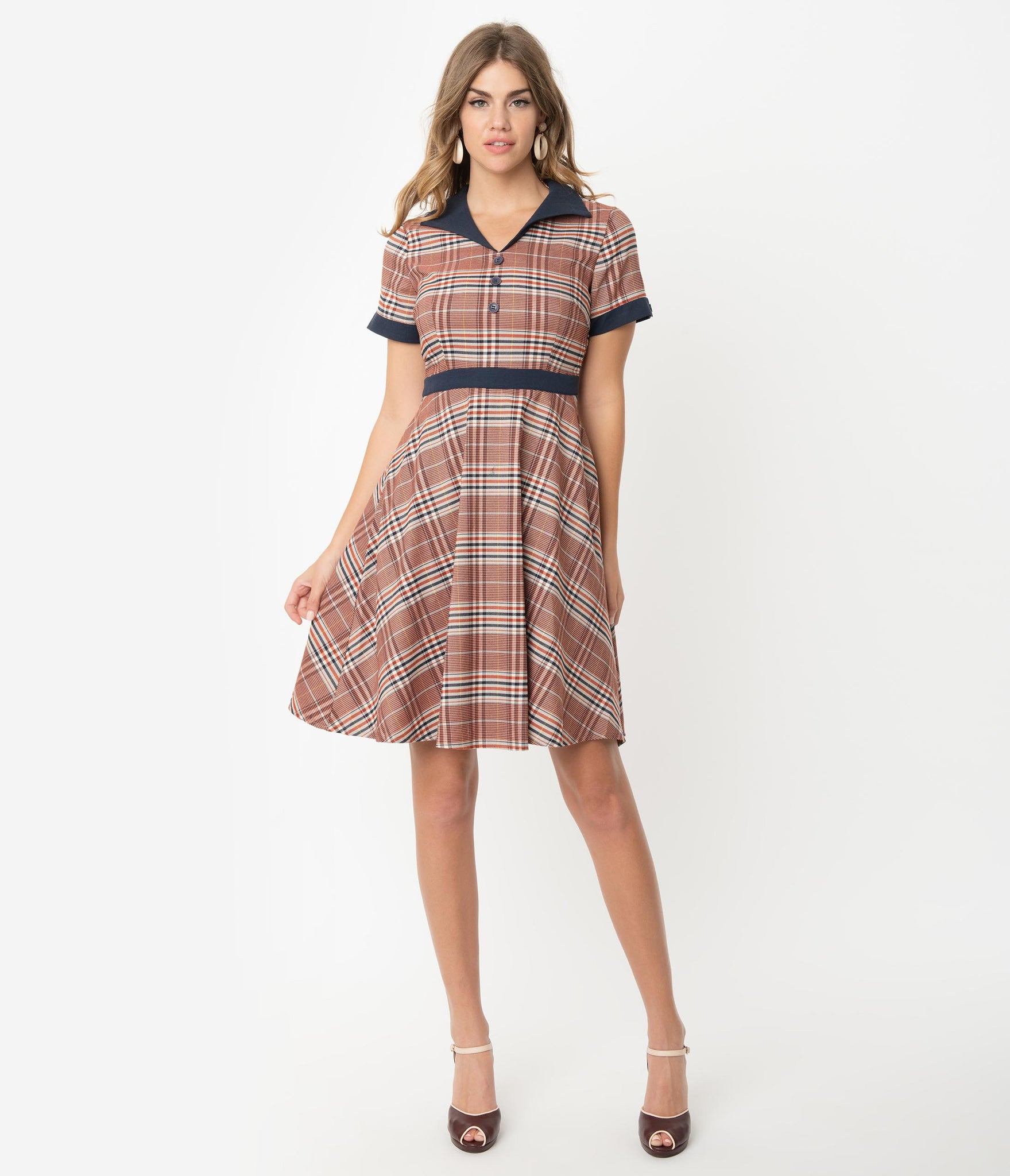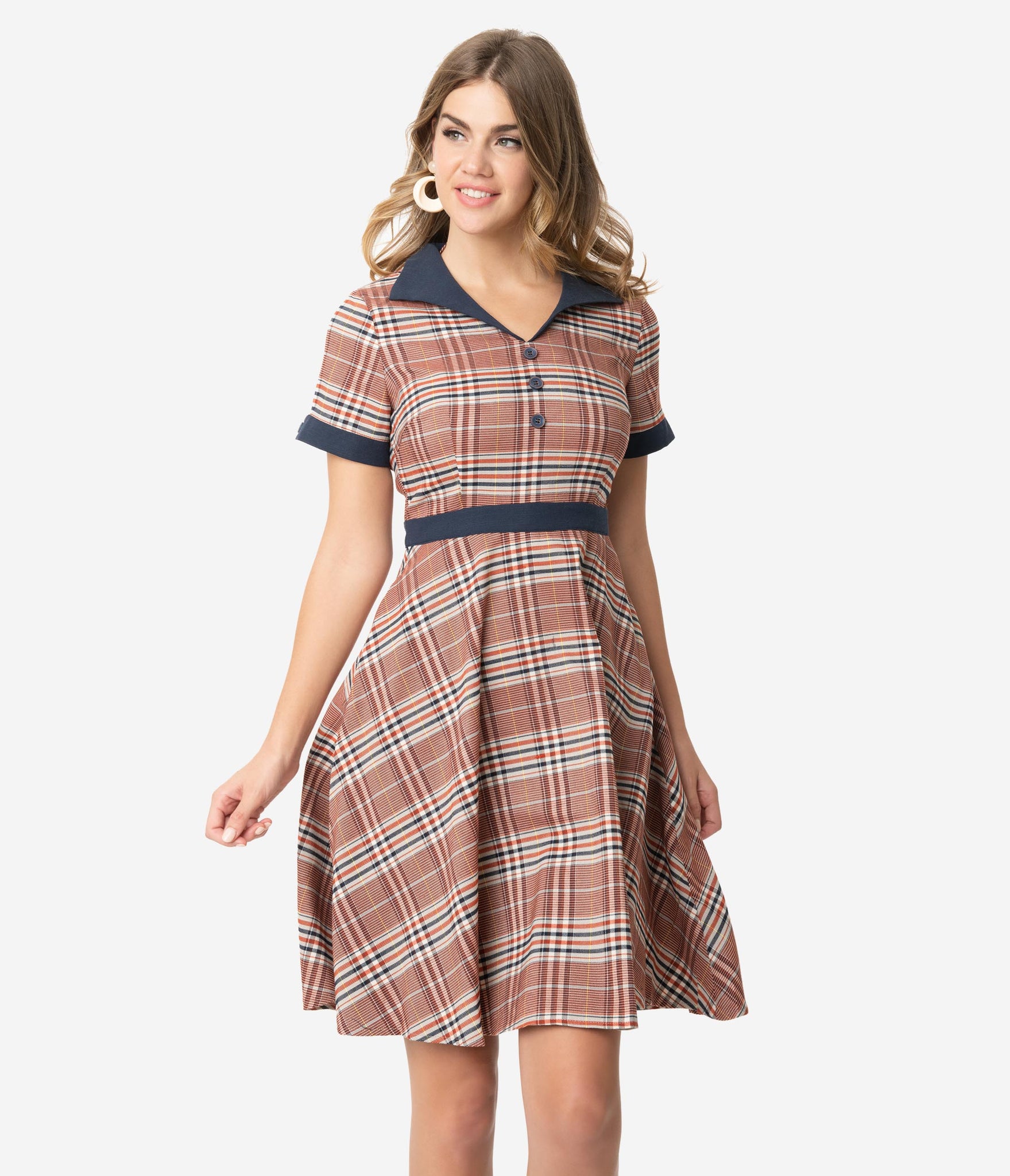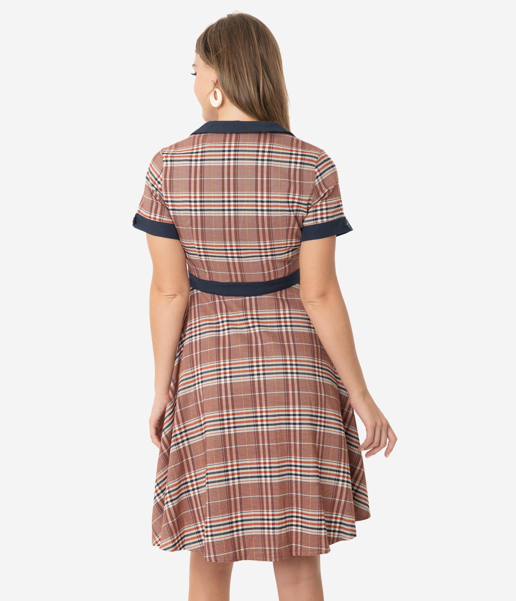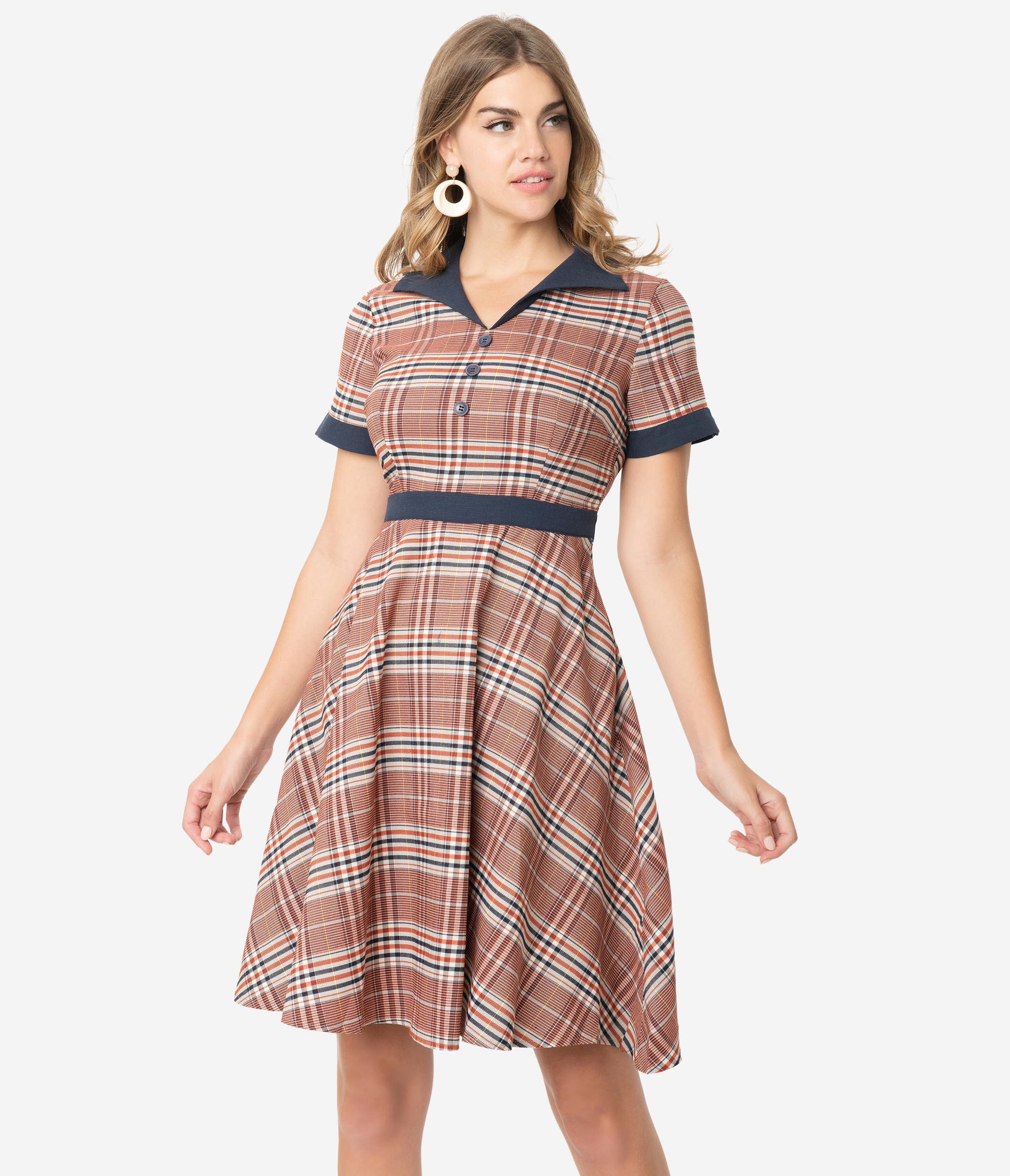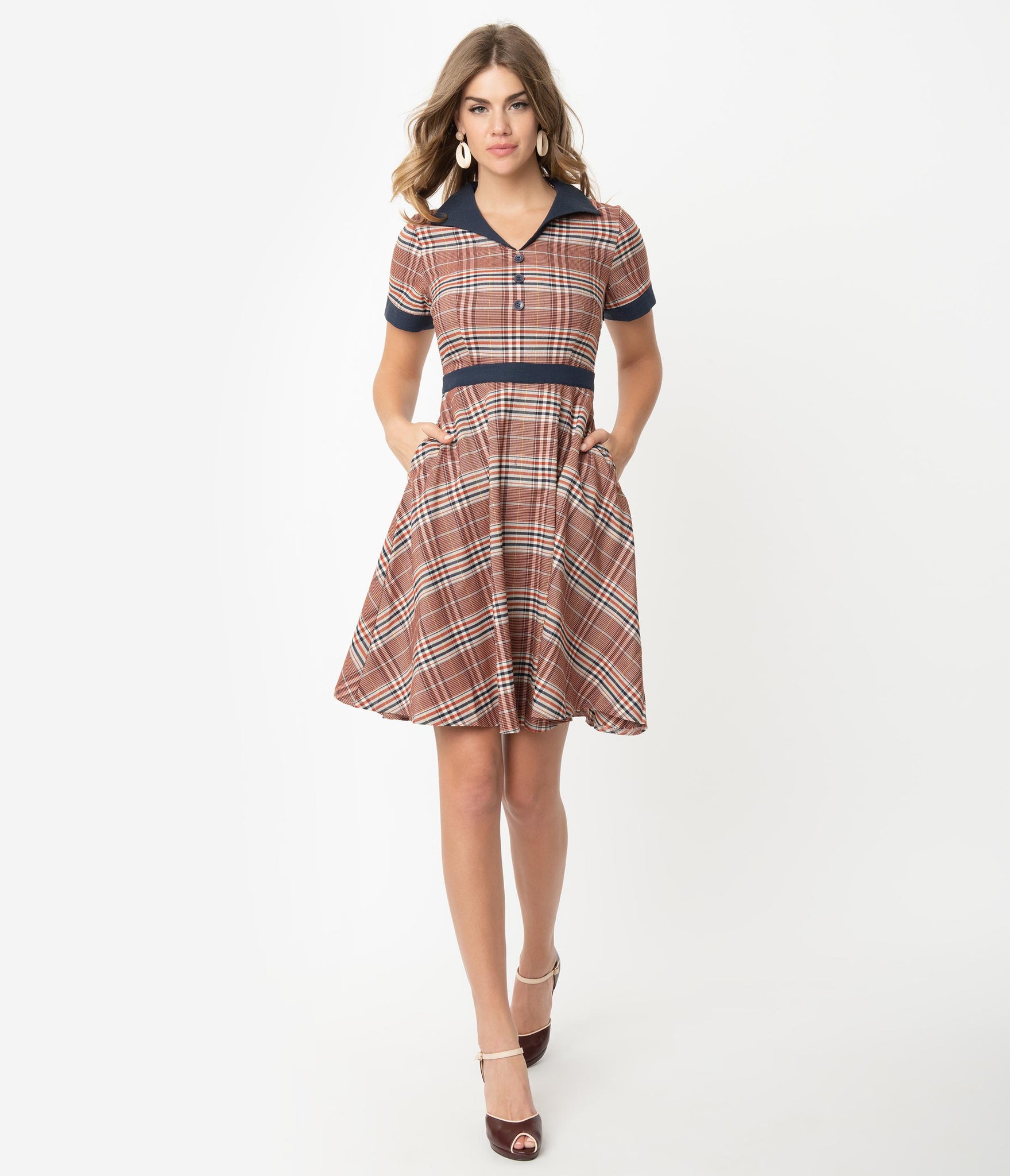 It’s quite the reception, gals! This adorable flare dress is a mid-century darling in a fabulous plaid pattern of red, blue, and white throughout. The darted bodice is centered by faux buttons while the modest V-neckline is highlighted by a solid navy blue winged collar and framed by sweet short sleeves. The blue banded waistline centers your hourglass as the flirtatious flare skirt dances at the knees, complete with side pockets. Outfitted with a side zipper, raise a glass to a new you!