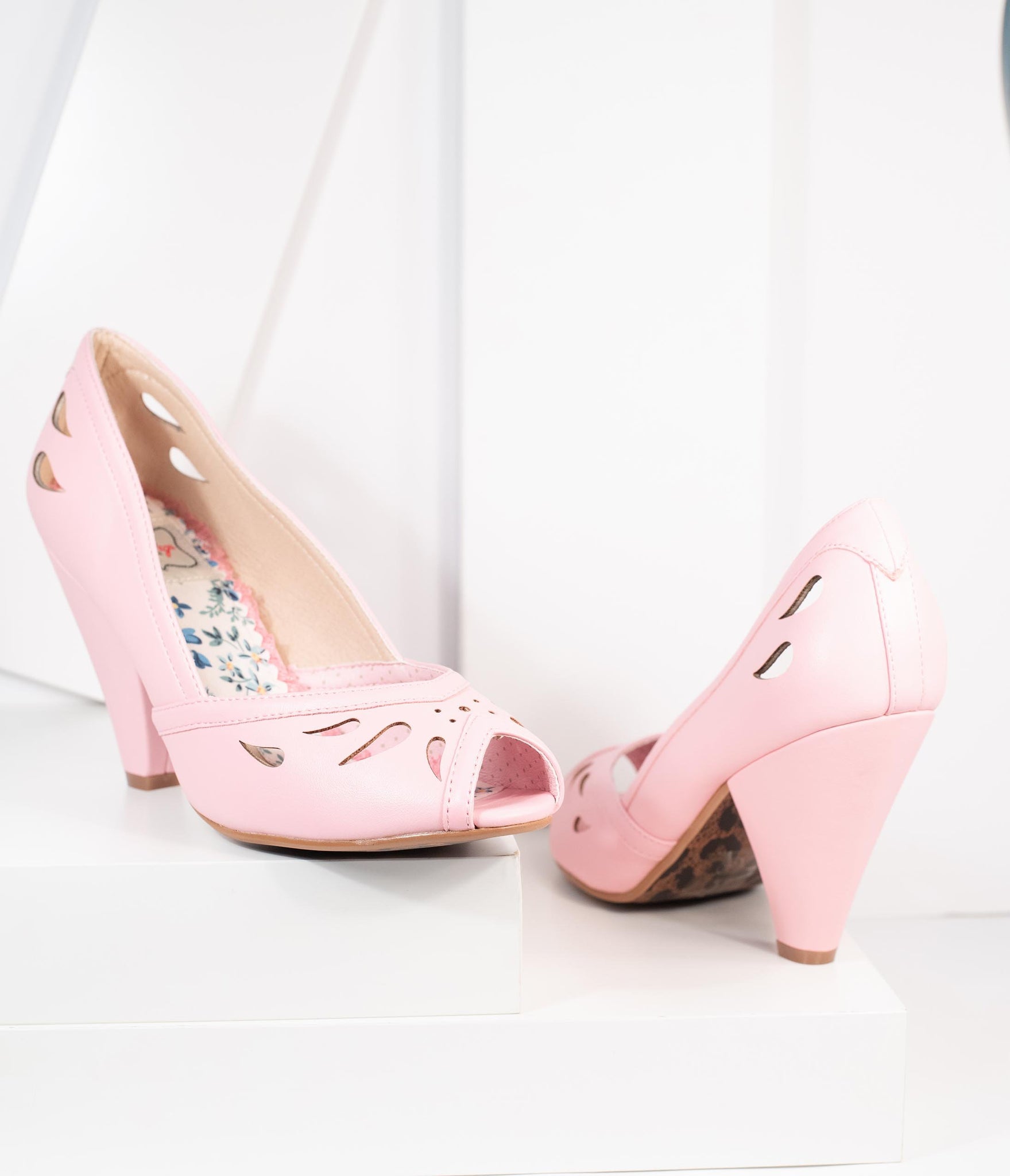 Bettie Page Light Pink Leatherette Peep Toe Marilyn Pumps