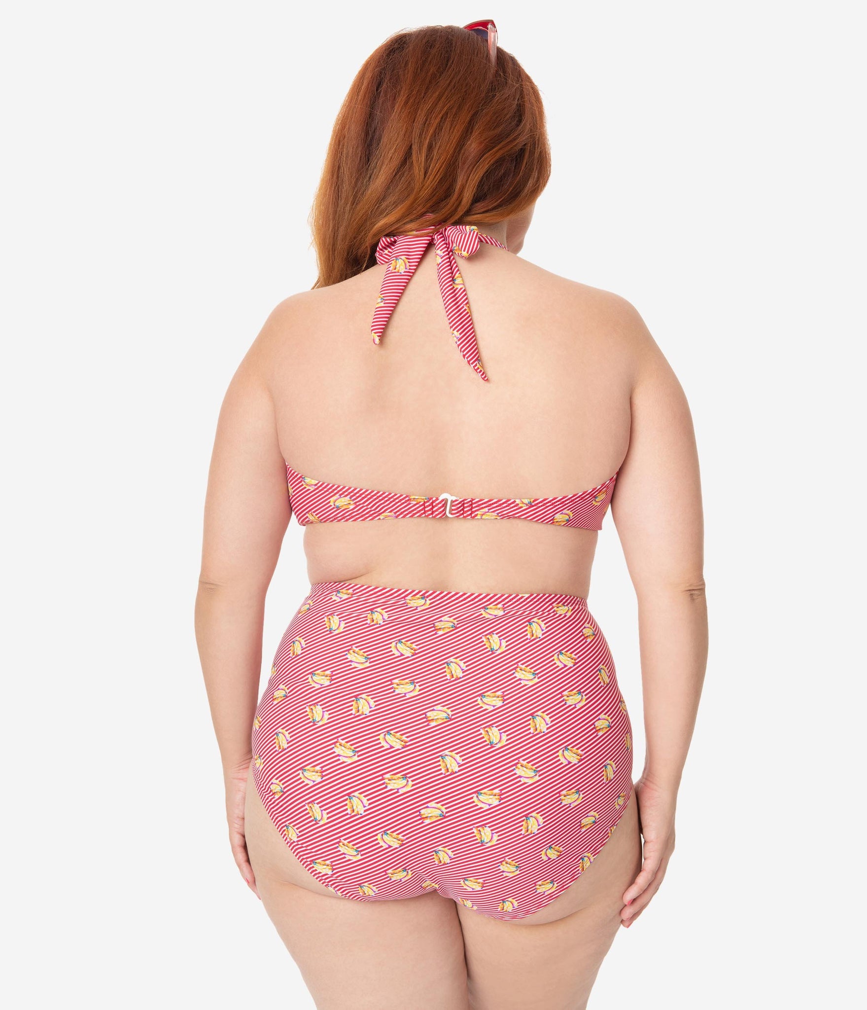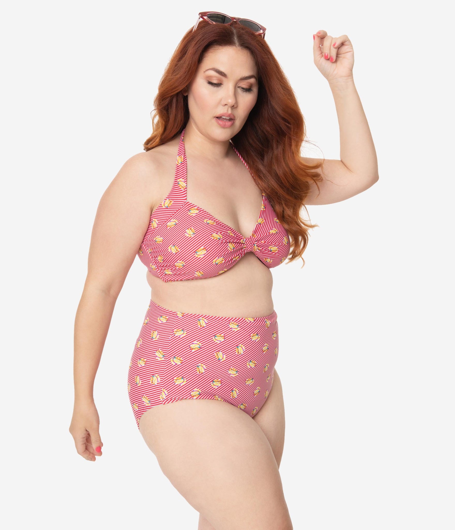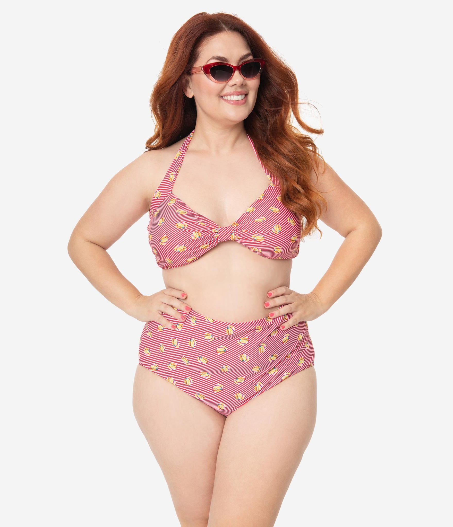 Bettie Page Plus Size Red & White Stripe Banana Bunch Swim Top
