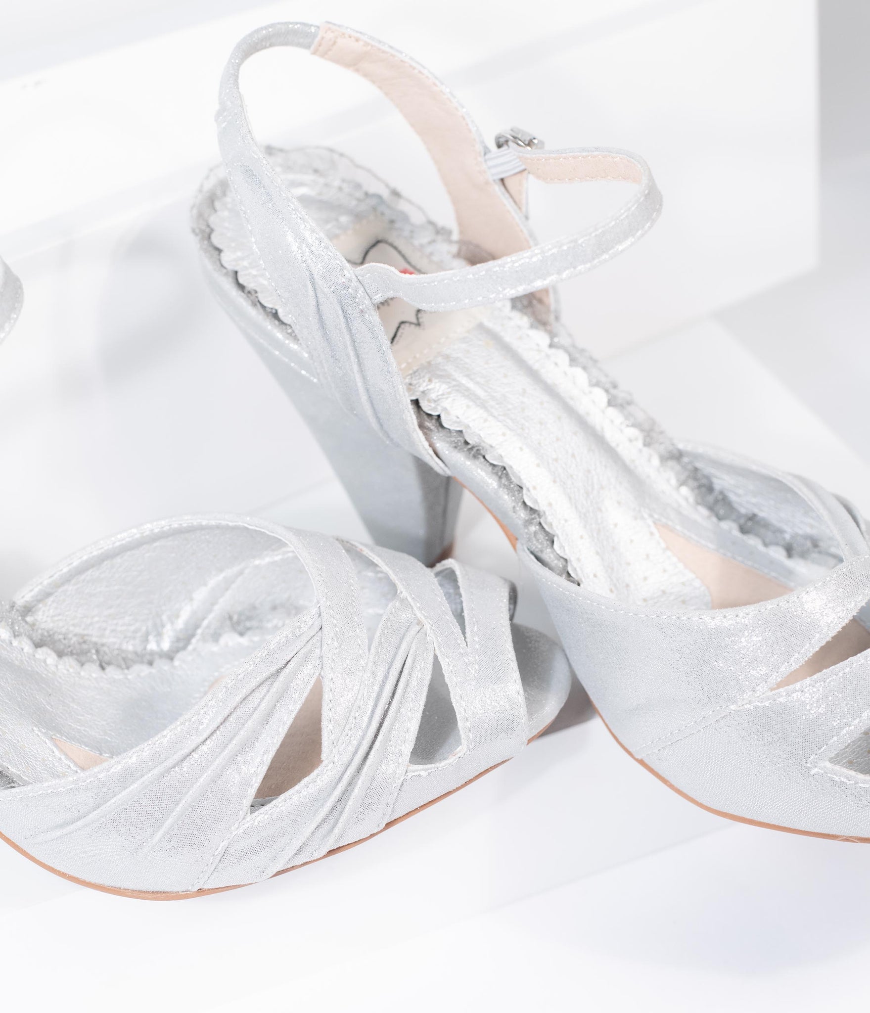 Bettie Page Silver Metallic Peep Toe Maria Heels