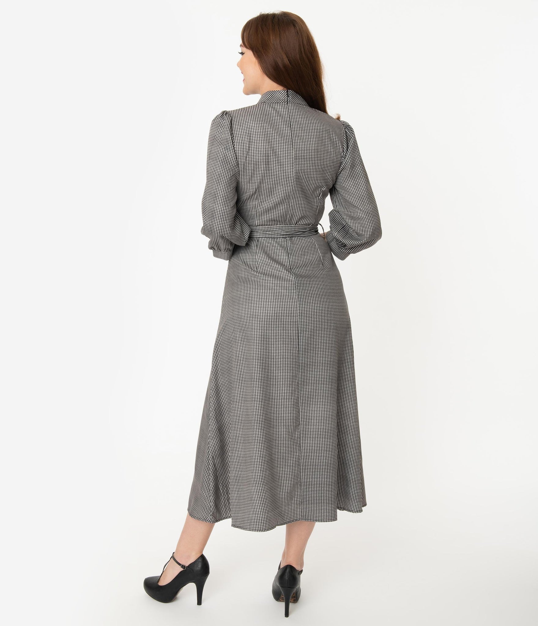 • Load image into Gallery viewer, Black & White Houndstooth Long Sleeve Midi Dress